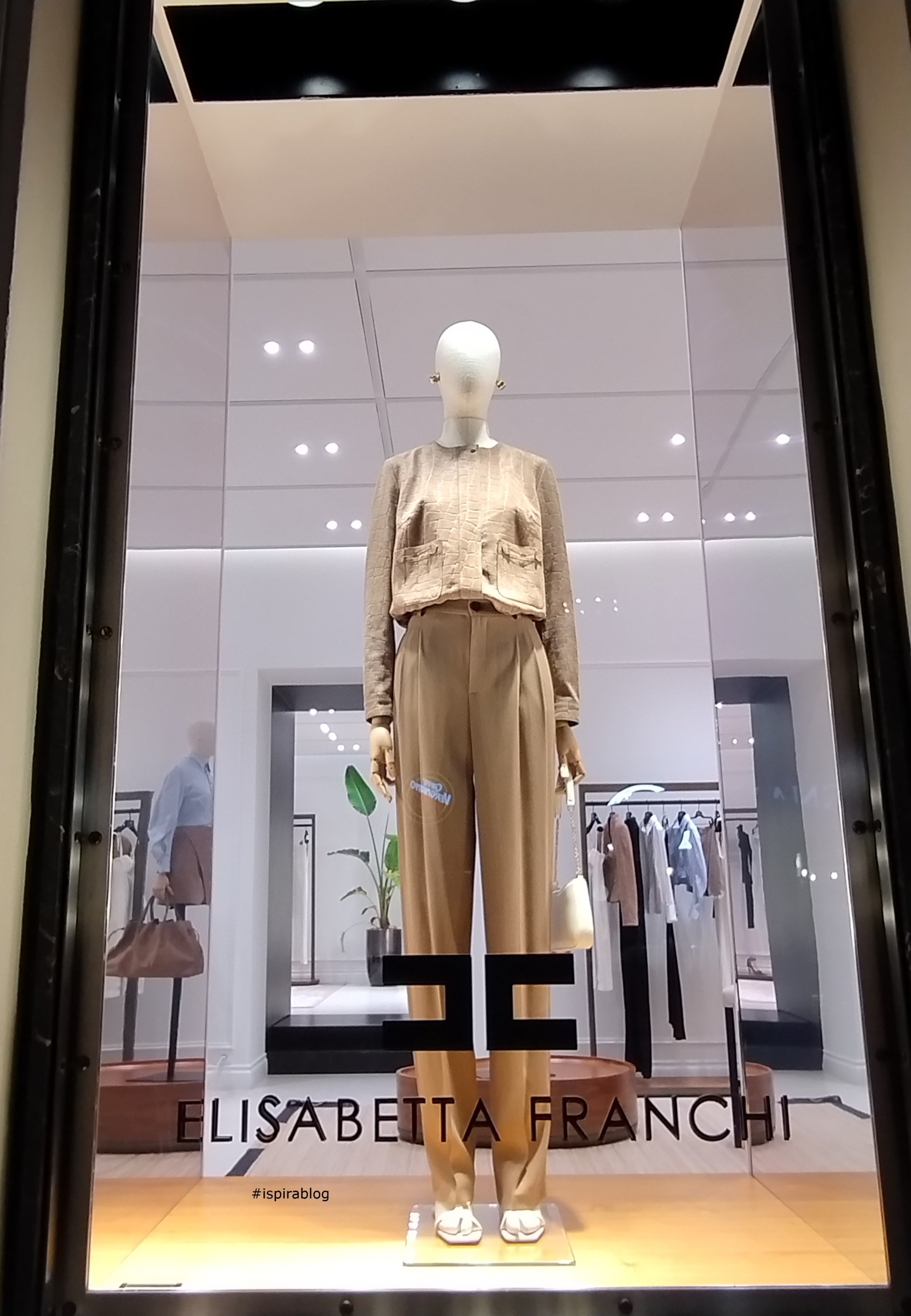 Elisabetta Franchi Turin - Winter 2025/26 Collection - beige jacket and trousers, with white leather handbag and sandals 2026-01-30
