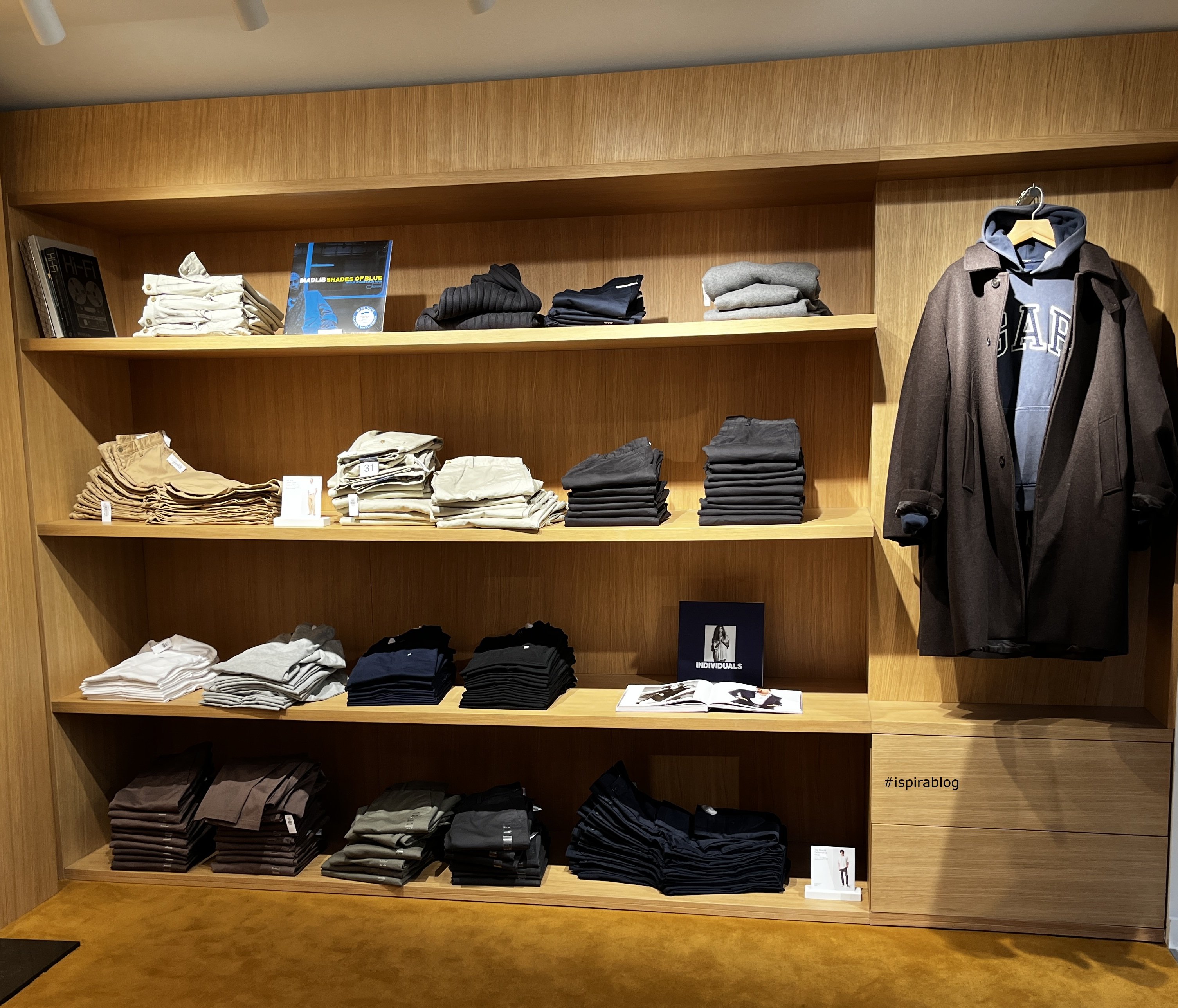 Gap London - Spring 2026 Collection - trousers and jumpers on the table, with downs, hoodies and sweaters on the back 2026-03-09