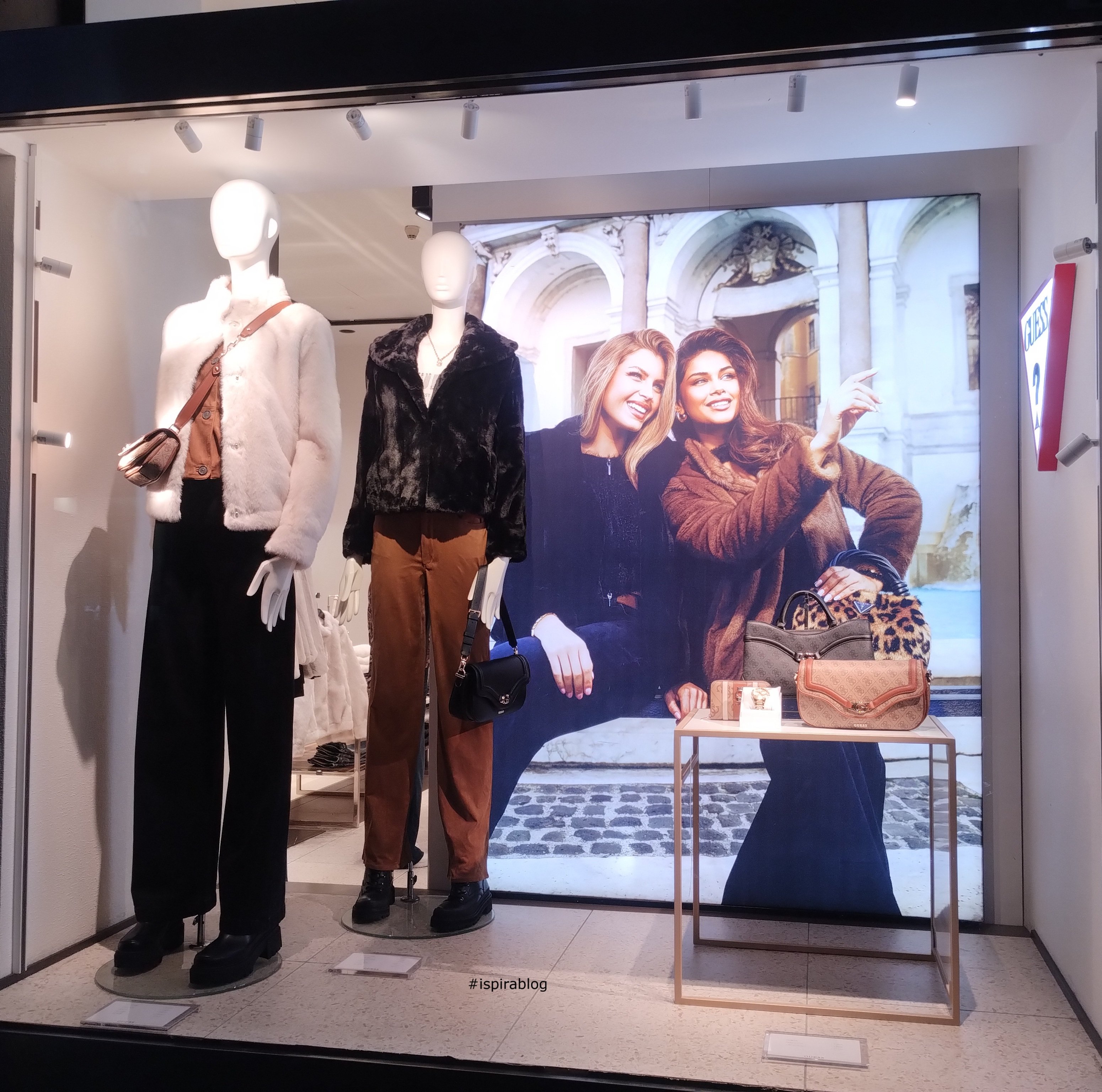 Guess London - Winter 2021 - Womenswear Collection - beige and black garments with down jackets, brown coats, leather handbags and heeled shoes 2022-01-07