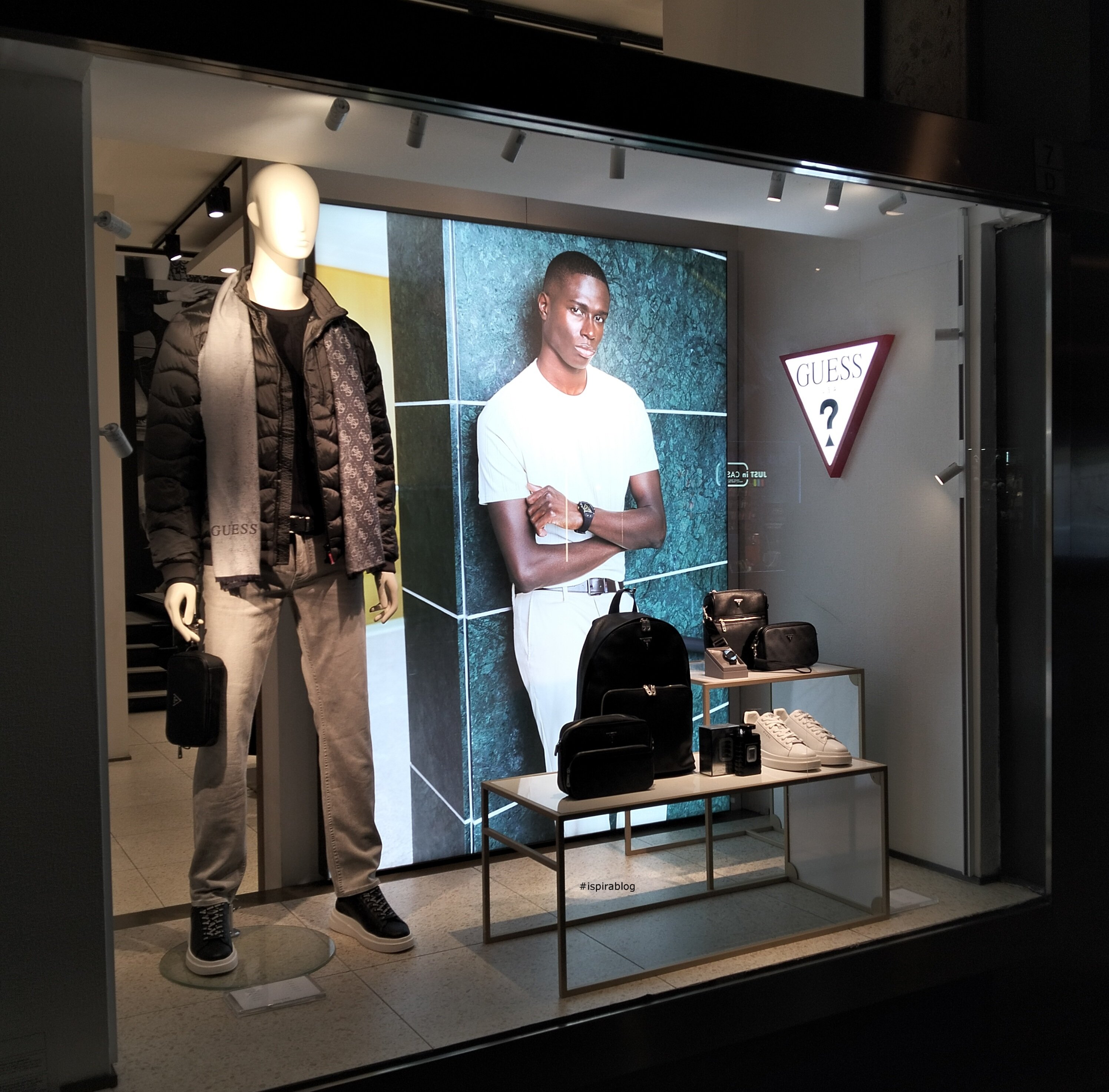 Guess Turin - Winter 2025/26 Collection - black T-shirt and down, with grey jeans, black shoes, and black backpack and bags 2026-01-28