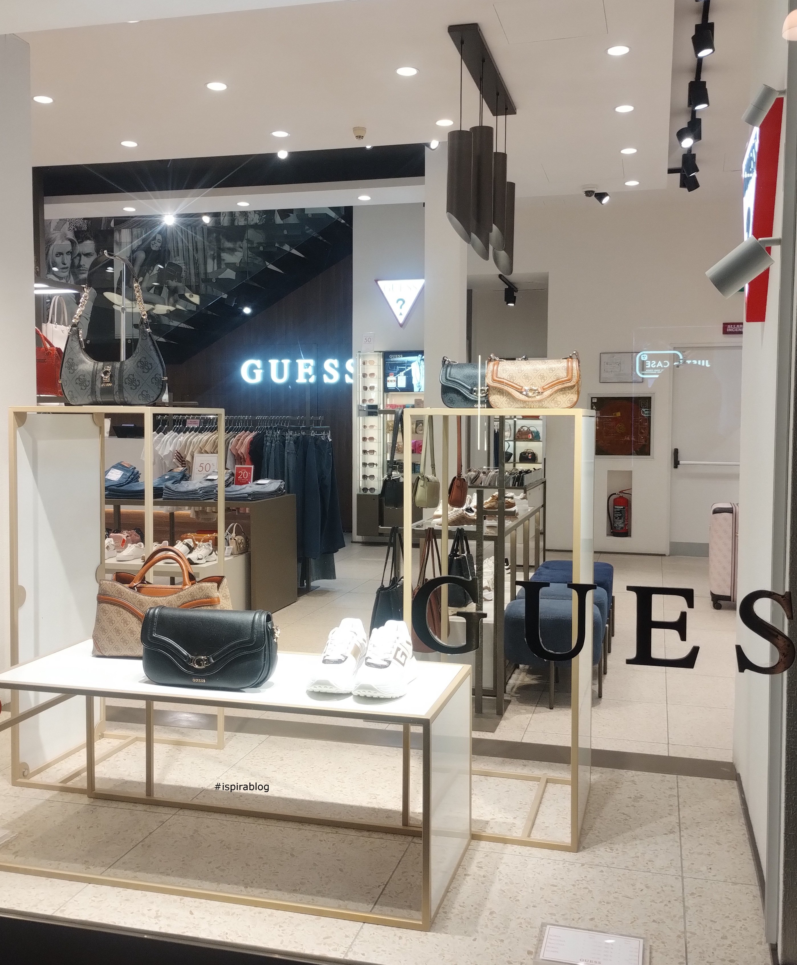 Guess Turin - Spring 2025 Womenswear Collection - grey and black suitcases, handbags of various colours and different sizes, and white sneakers 2025-02-11