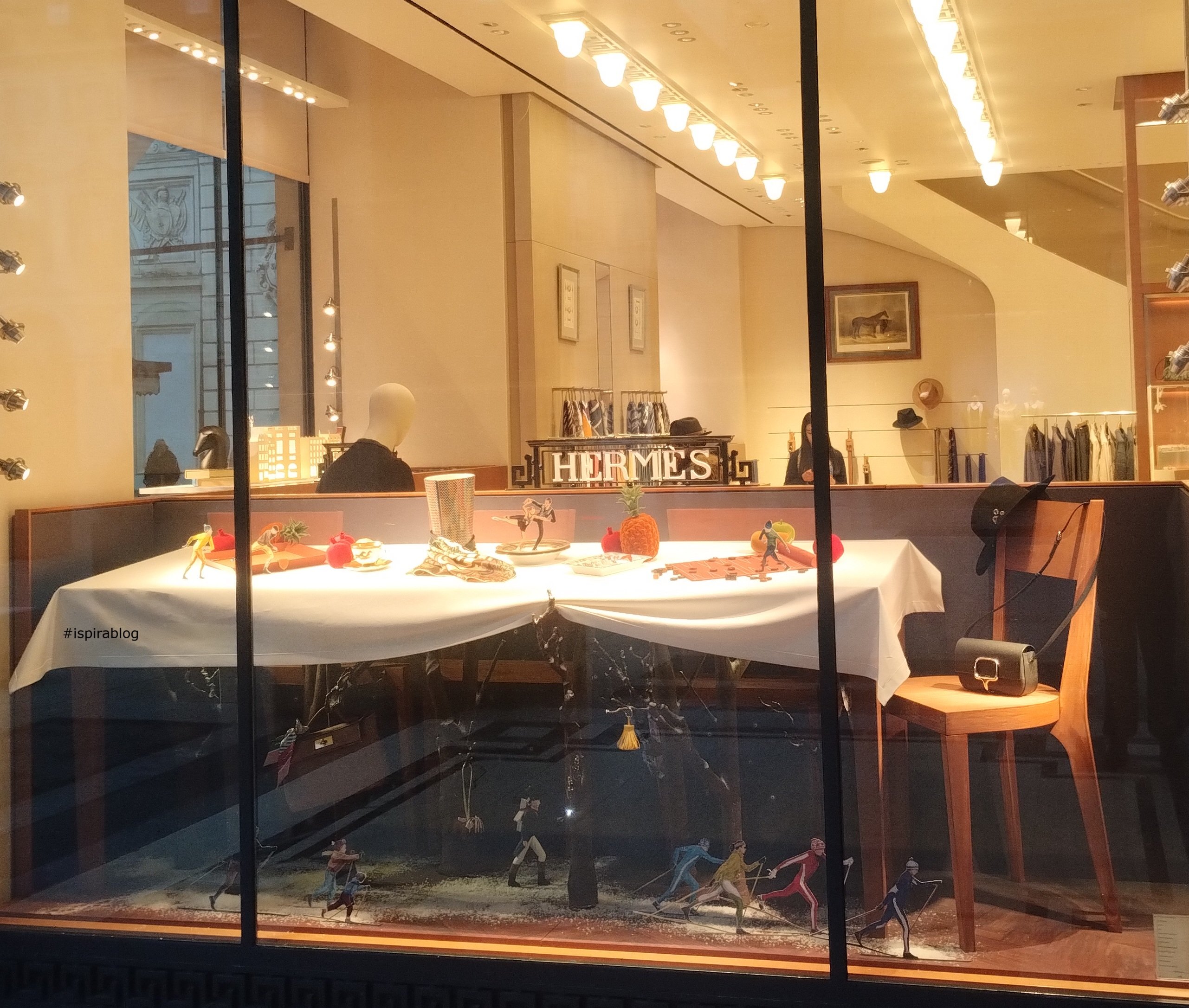 Hermes Turin - Winter 2025/26 Collection - brown leather shoulder bag with hat, plates, vase and patterned foulard 2026-01-21