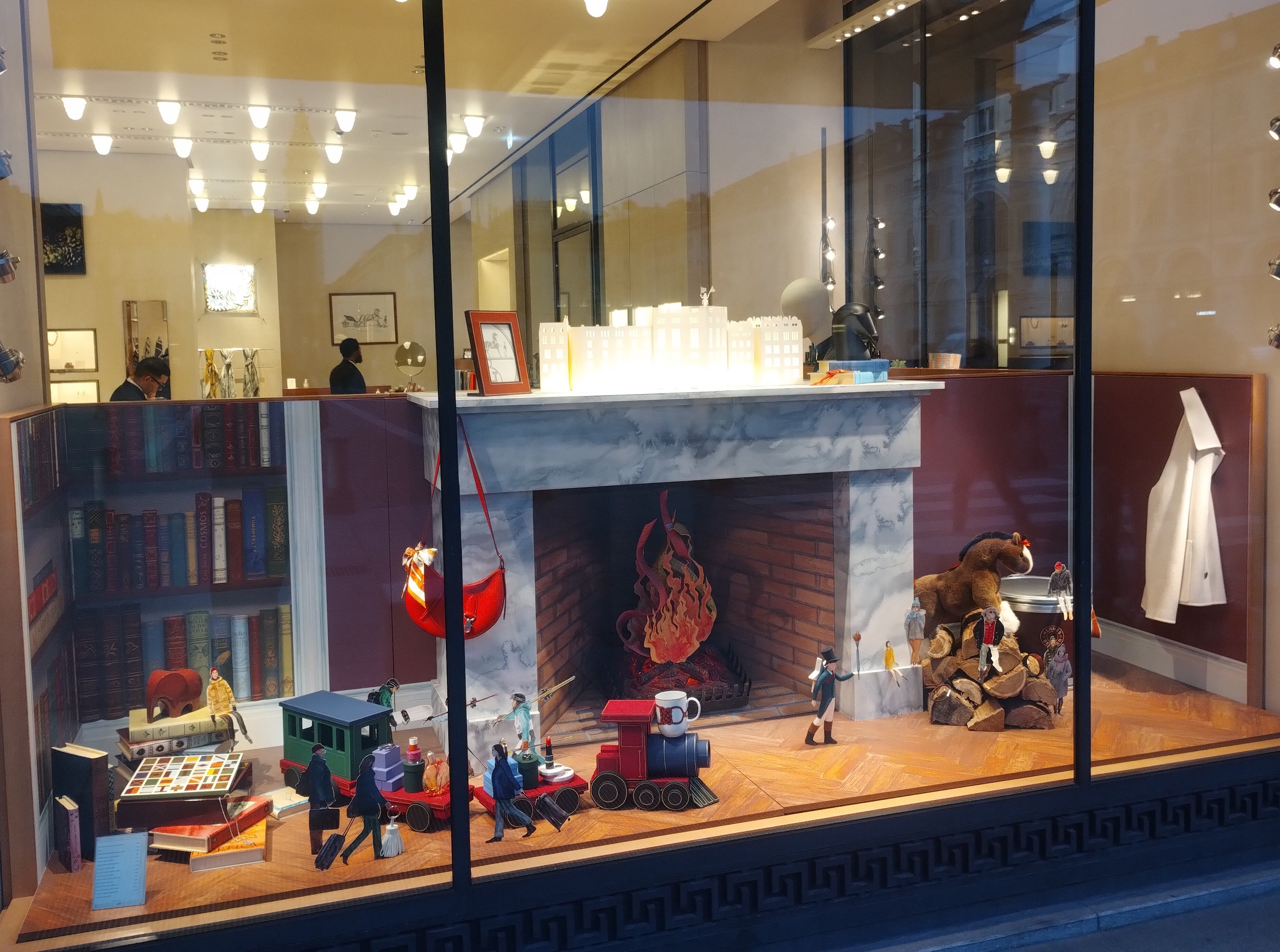Hermes Holiday Season window, fall winter 2022 handbags, fragrances, belts, accessories, faubourg medor hat, 2022-12-15