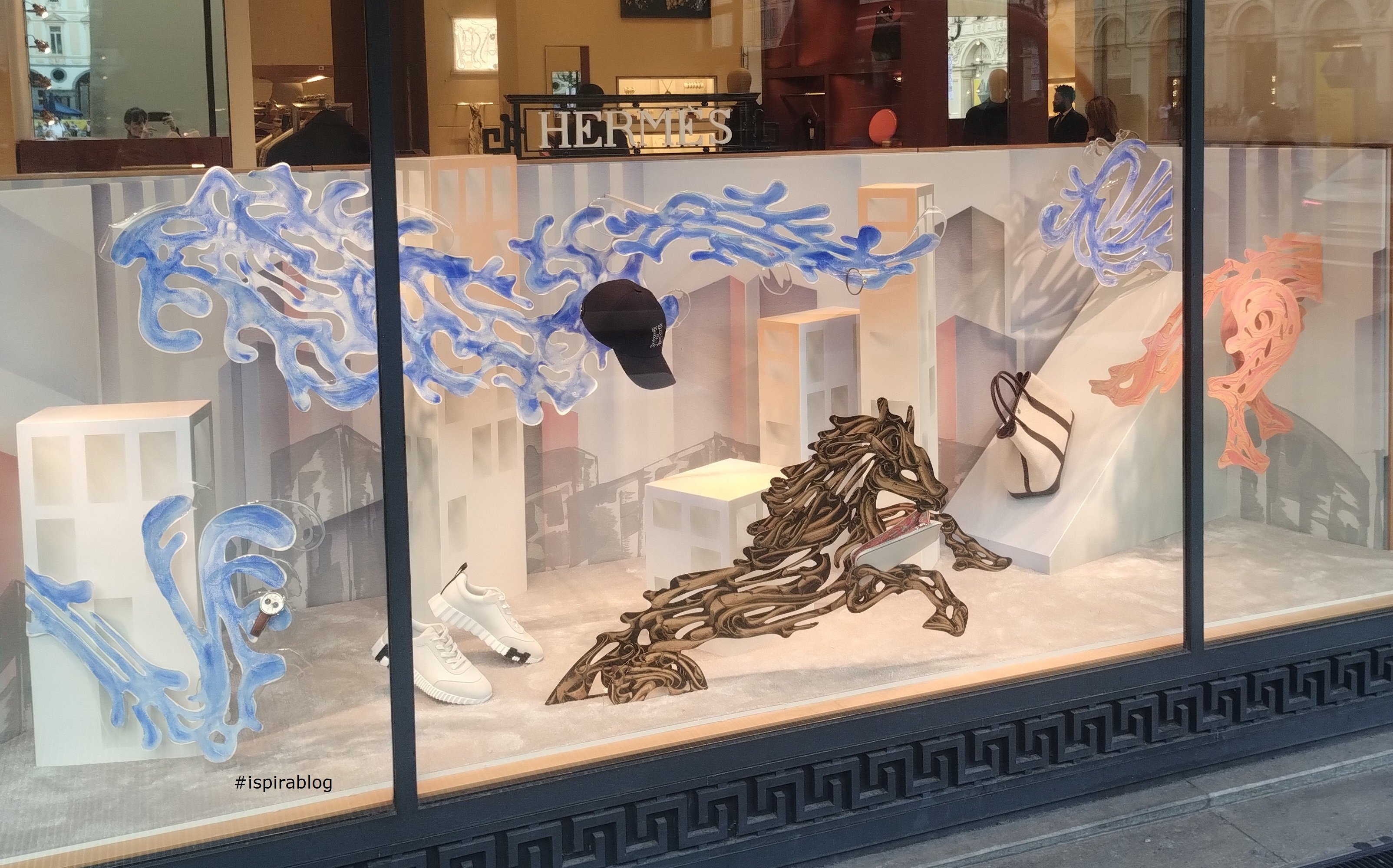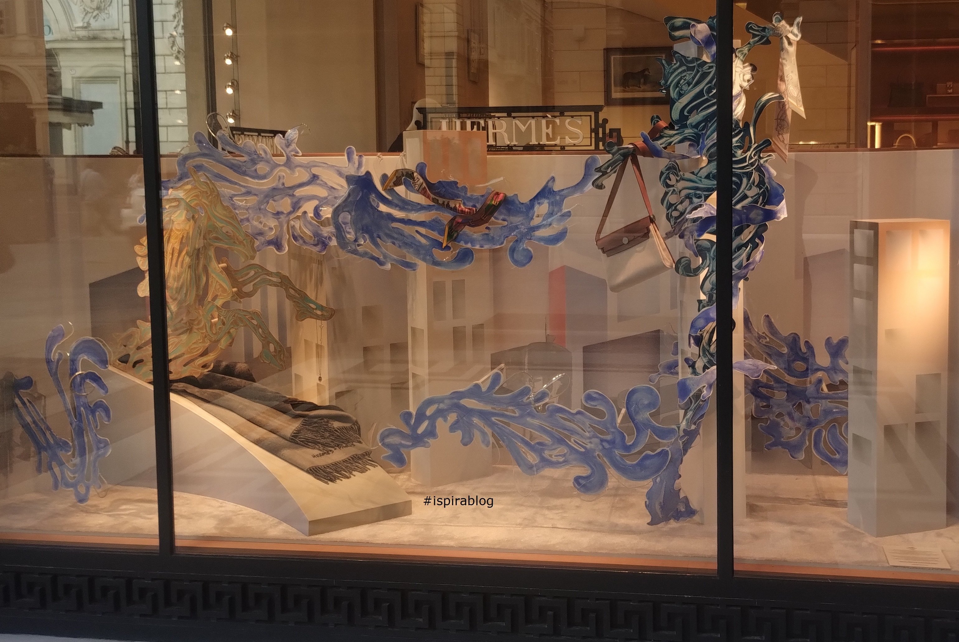 Hermes Turin - Fall 2025 Womenswear Collection - ceramic objects with patterned foulard and blue bag 2025-09-24