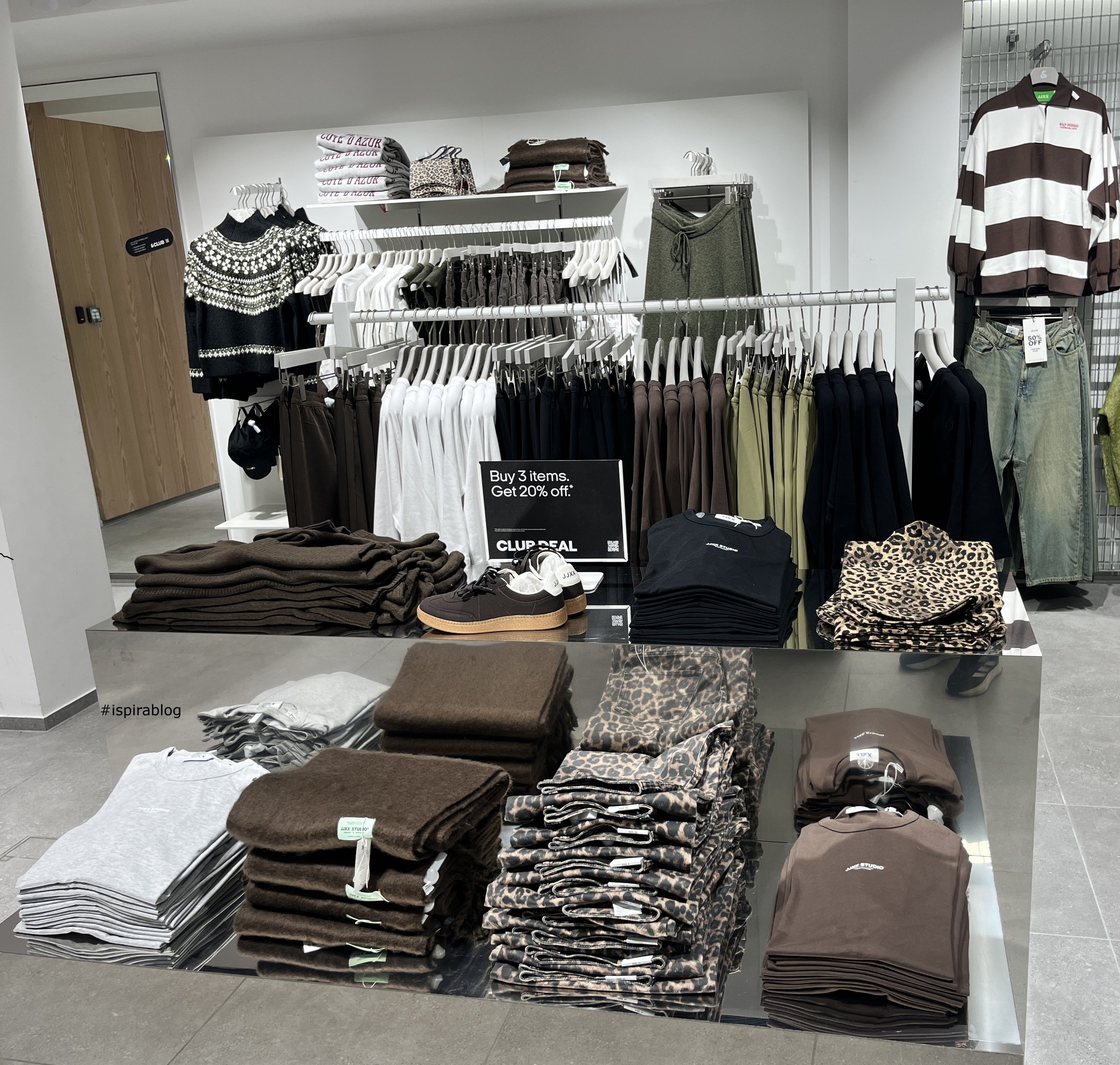 Jack & Jones London - Winter 2025/26 Collection - brown and patterned womenswear, with grey and black T-shirts, trousers, black and white jerseys and brown shoes 2026-01-08