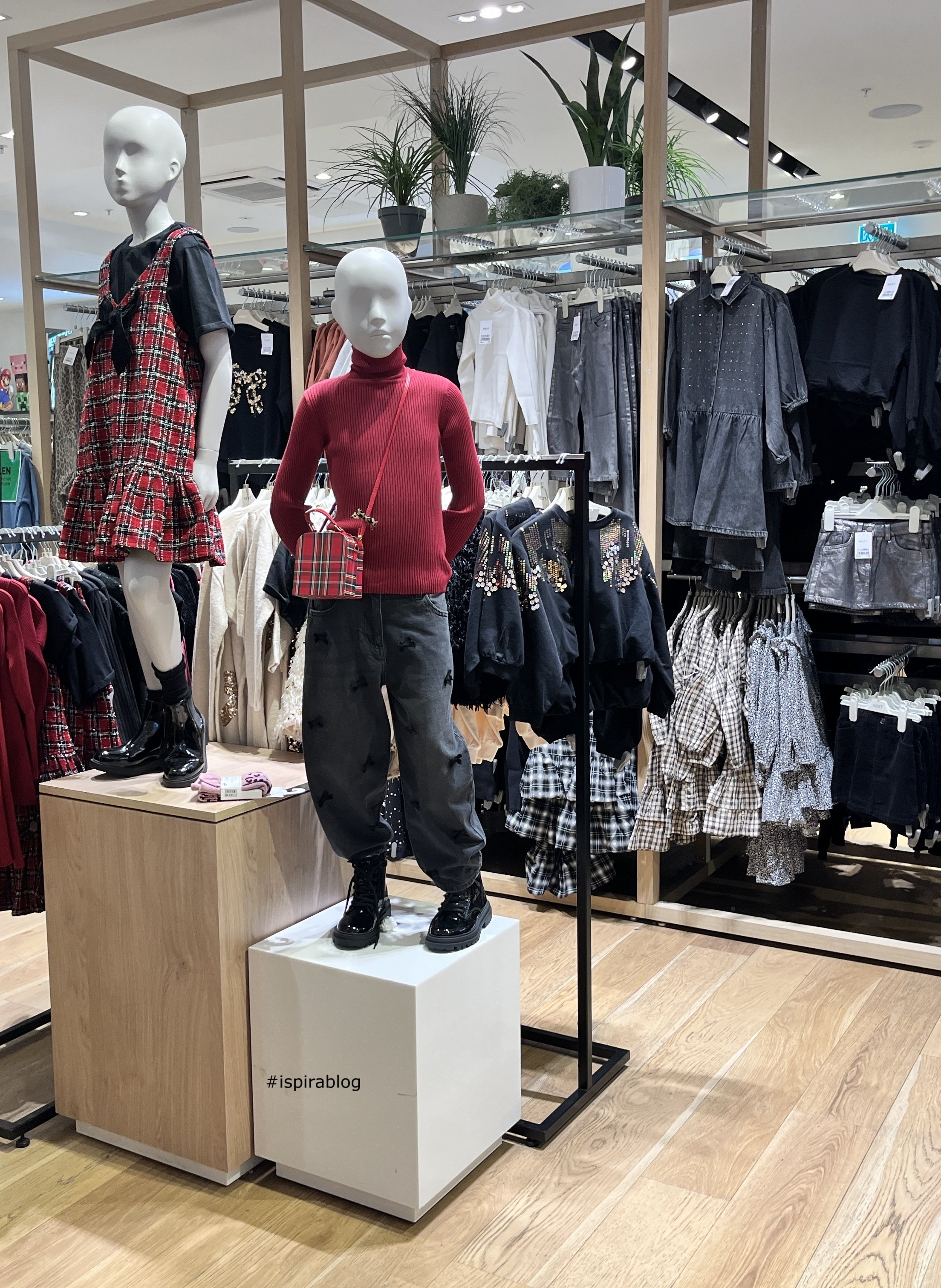 Next London - Fall 2025 Childrenswear Collection - chequered dress with black T-shirt and boots, red turtleneck jumper with black trousers and boots, in the back black, white and grey childrenswear 2025-10-30 Next London - Fall 2025 Childrenswear Collection - chequered dress with black T-shirt and boots, red turtleneck jumper with black trousers and boots, in the back black, white and grey childrenswear 2025-10-30