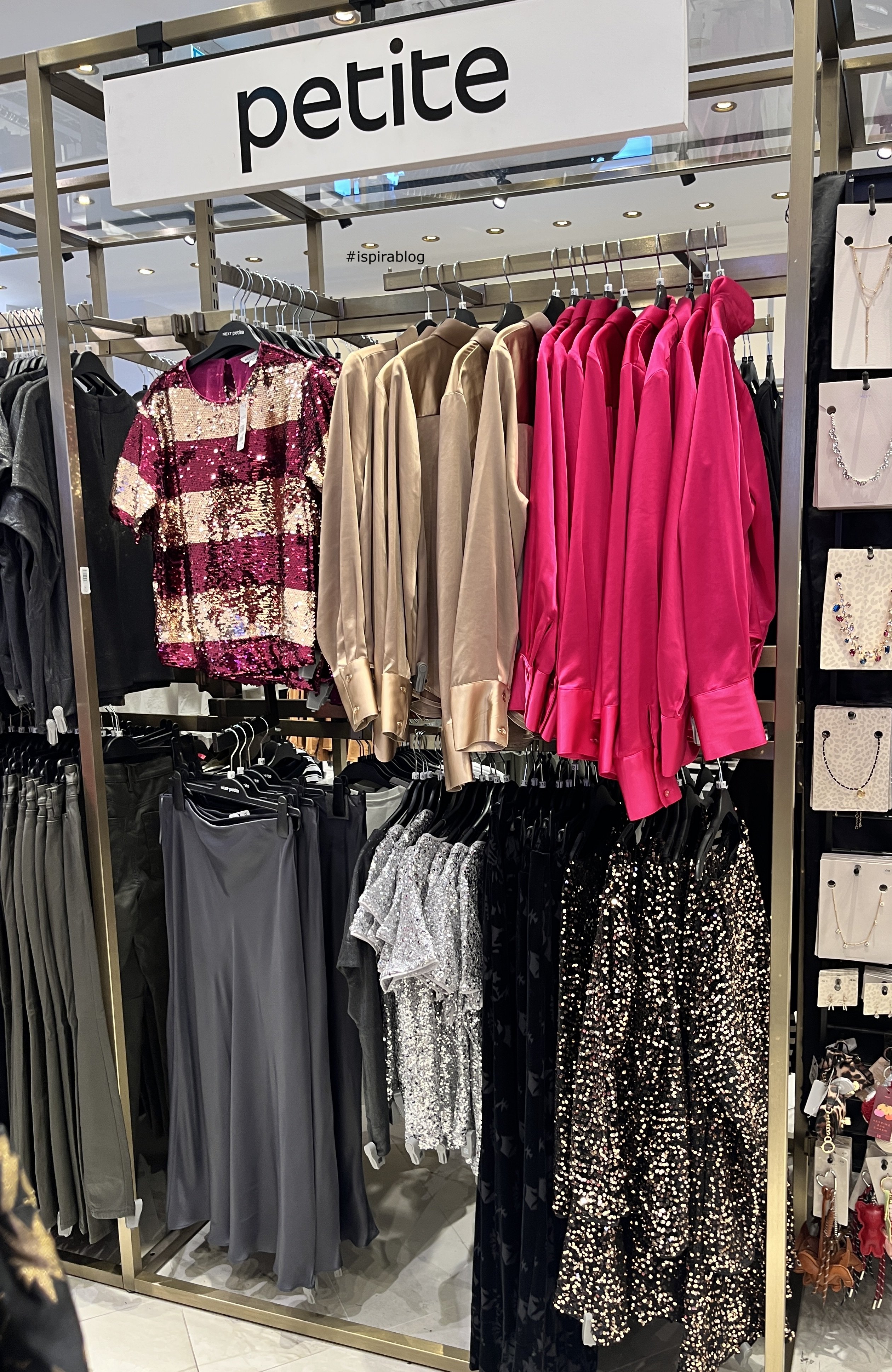 Next London - Fall 2025 Collection - Petite line: grey womenswear with striped T-shirts, beige and pink blouses, and glitter T-shirts and dresses 2025-10-30 Next London - Fall 2025 Collection - Petite line: grey womenswear with striped T-shirts, beige and pink blouses, and glitter T-shirts and dresses 2025-10-30