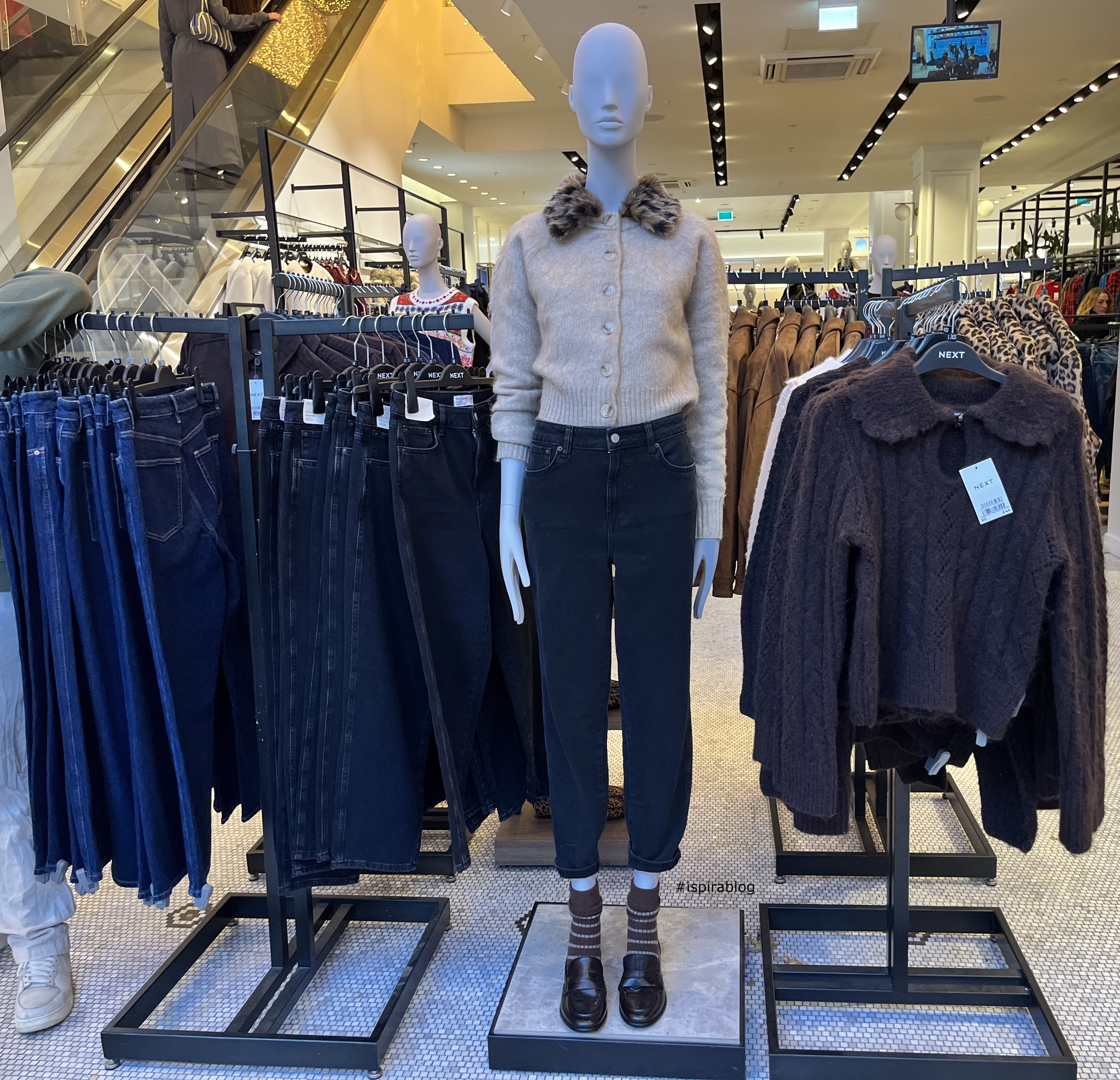 Next London - Fall 2025 Collection - jeans with white and brown sweaters and brown moccasins 2025-10-30 Next London - Fall 2025 Collection - jeans with white and brown sweaters and brown moccasins 2025-10-30