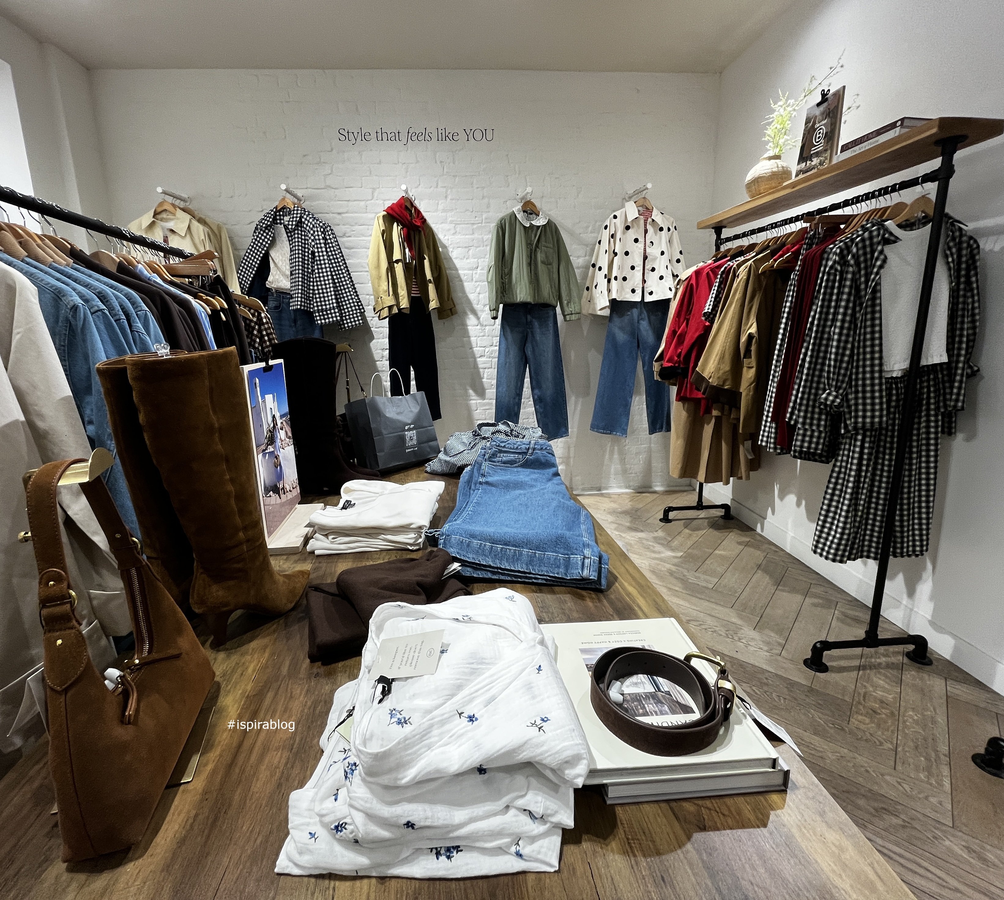 Nobody's Child London - Spring 2026 Collection - white blouses and T-shirts with jeans, brown boots and handbag, and womenswear of various colours and patterns 2026-03-10