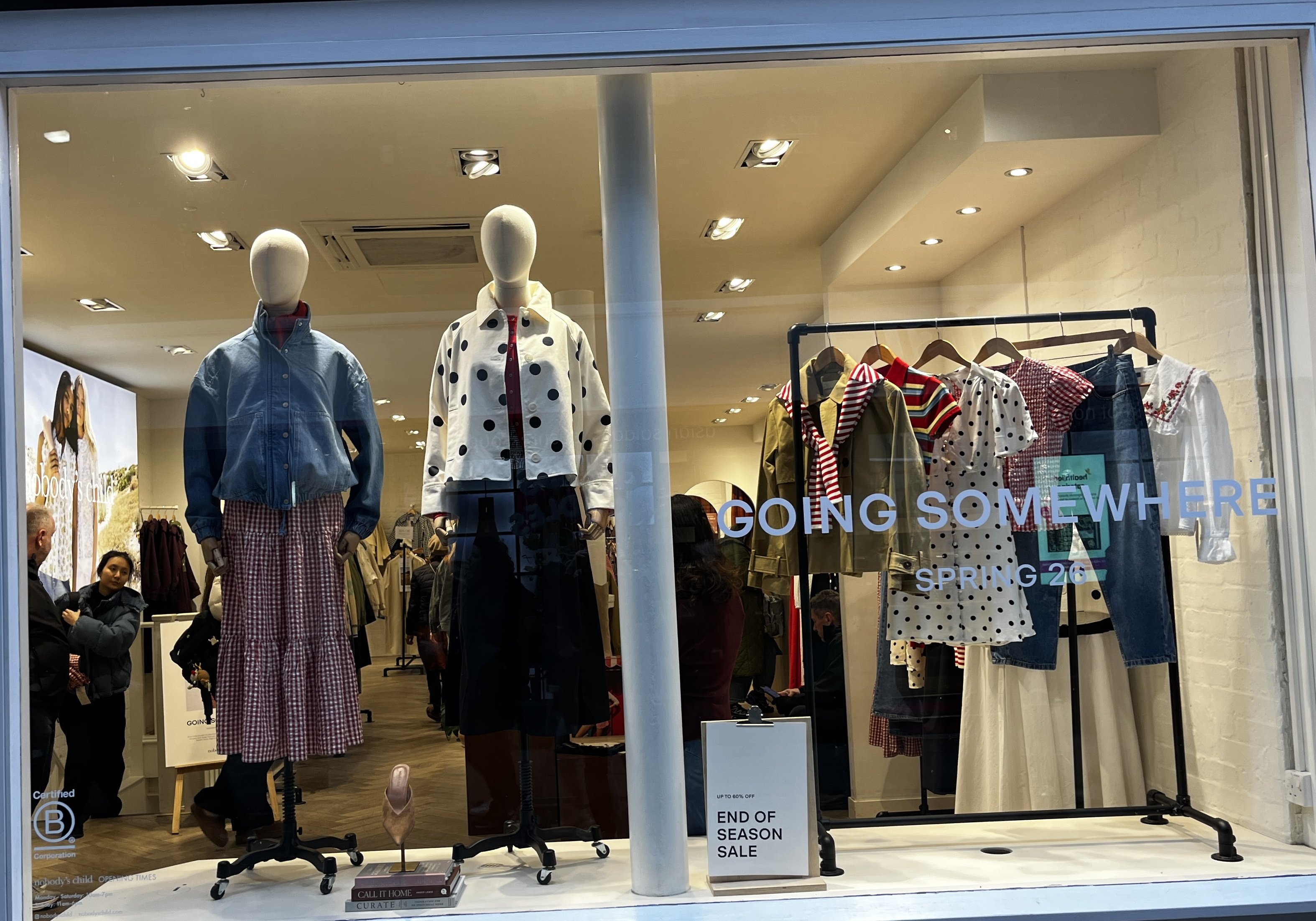 Nobody's Child London - Spring 2026 Collection - white blouses and T-shirts with jeans, brown boots and handbag, and womenswear of various colours and patterns 2026-03-10