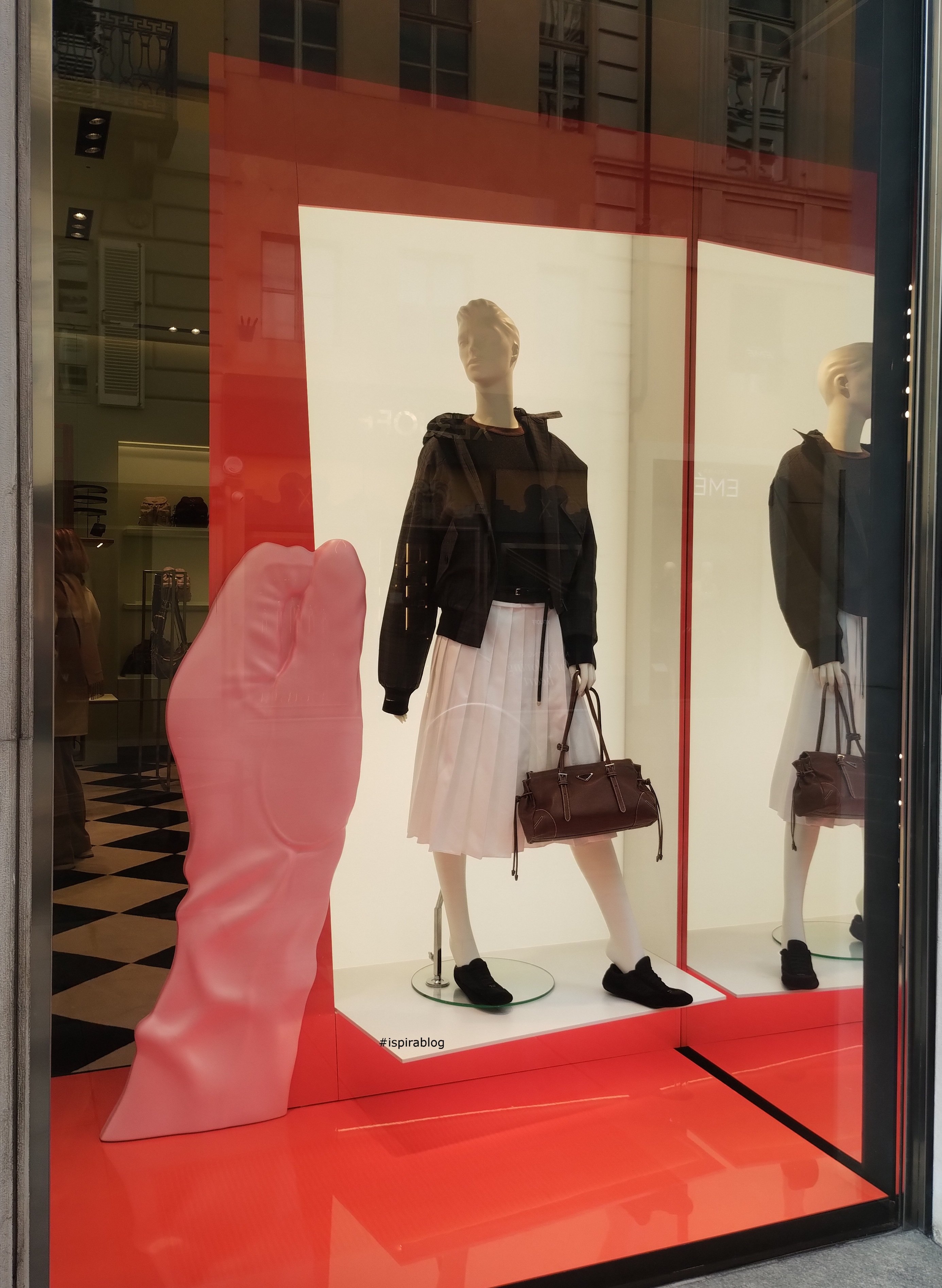 Prada - Milan - Spring 2018 - Womenswear Collection - white and black leather handbags with red leather shoes 2018-04-24