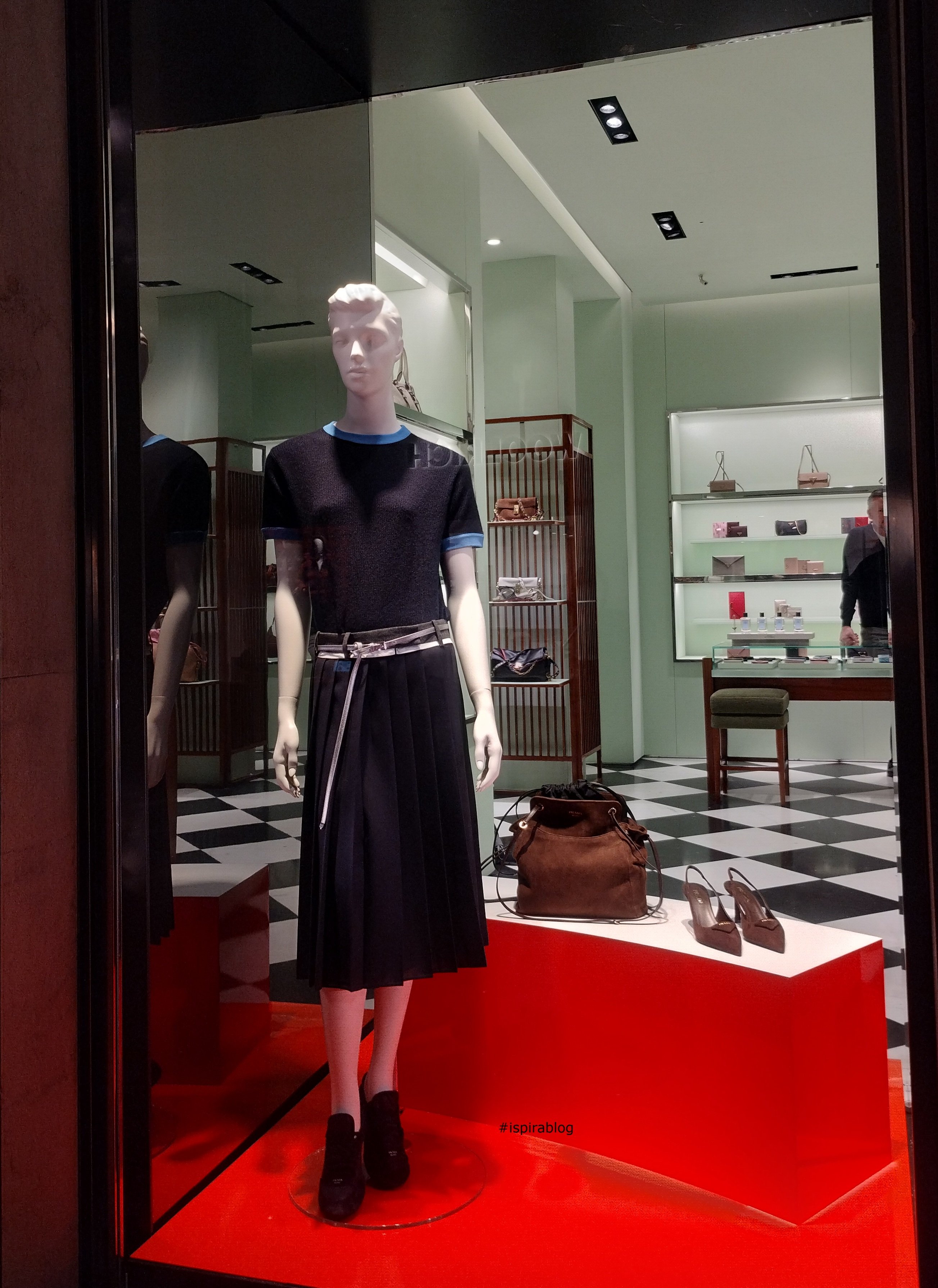 Prada Turin - Pre Spring 2026 Collection - black T-shirt and skirt, with brown leather bag and shoes 2026-01-26