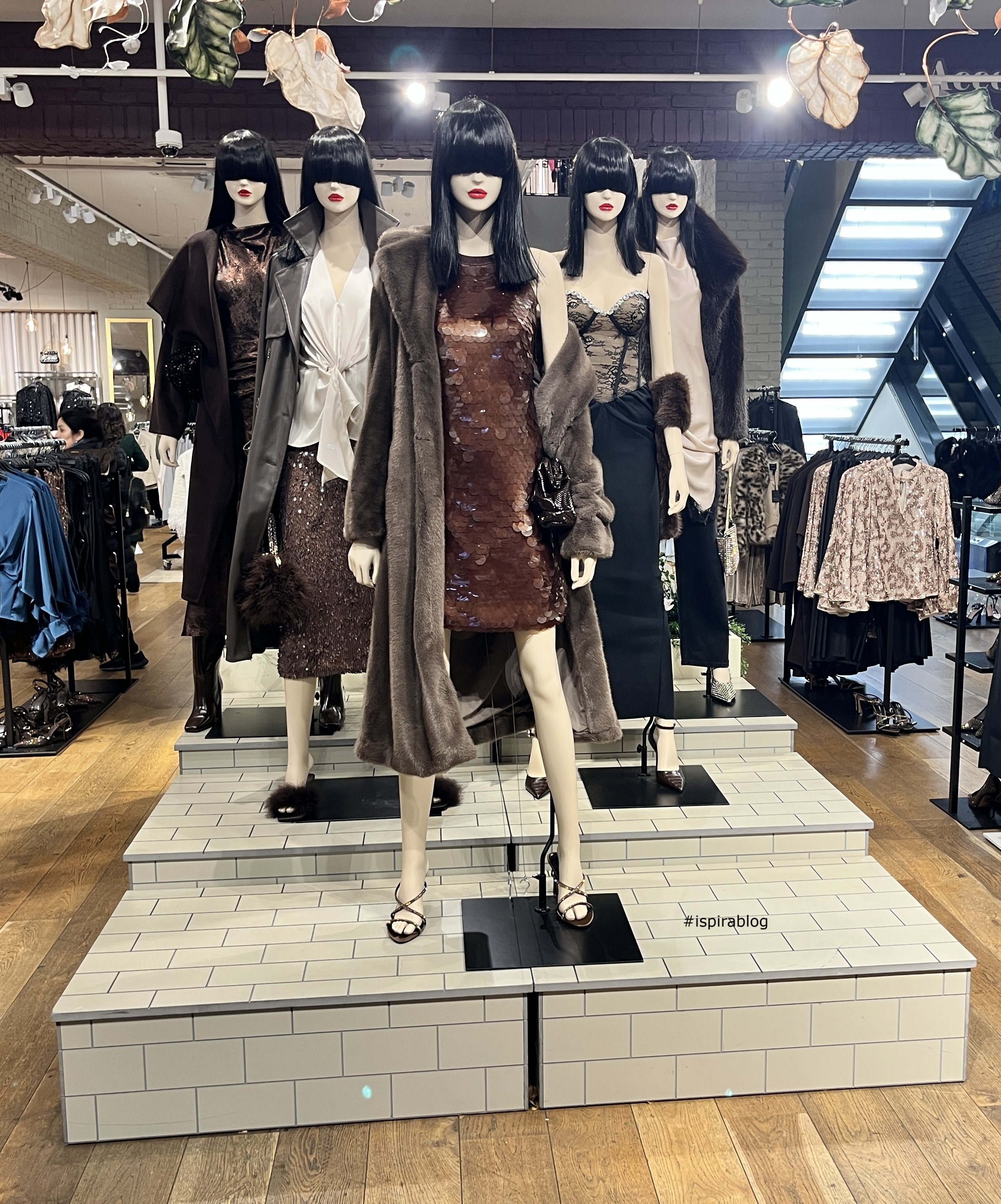 River Island London - Winter 2025 Collection - brown dresses and skirt, with blouses, black dress and trousers, coats and fur coats, boots and heels 2025-12-10