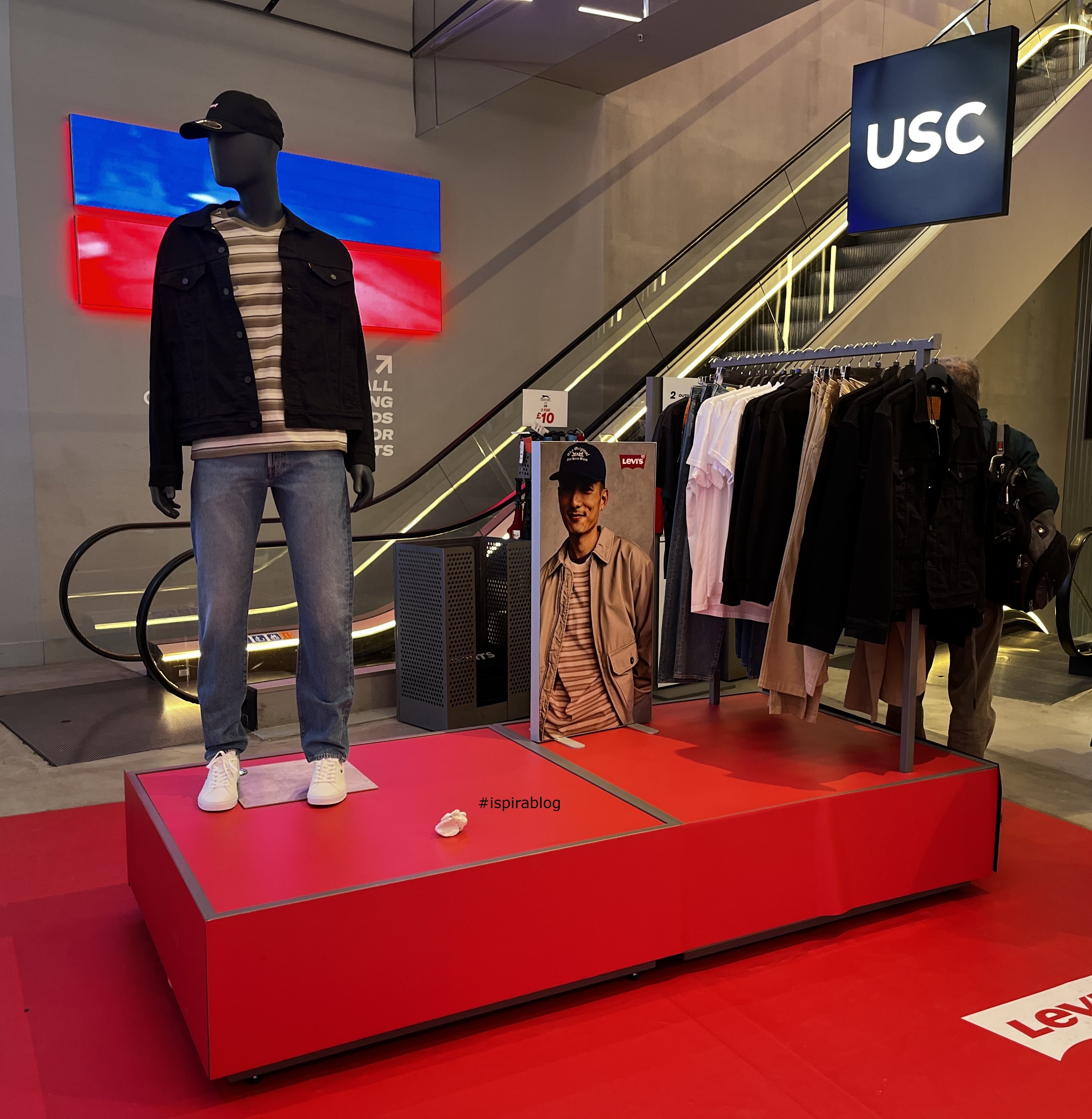 Sports Direct London - Fall Menswear Collection - blue sweatshirts, trousers and shorts, with red T-shirts and sweatshirts, white and blue sweatshirts, and sneakers 2024-09-30