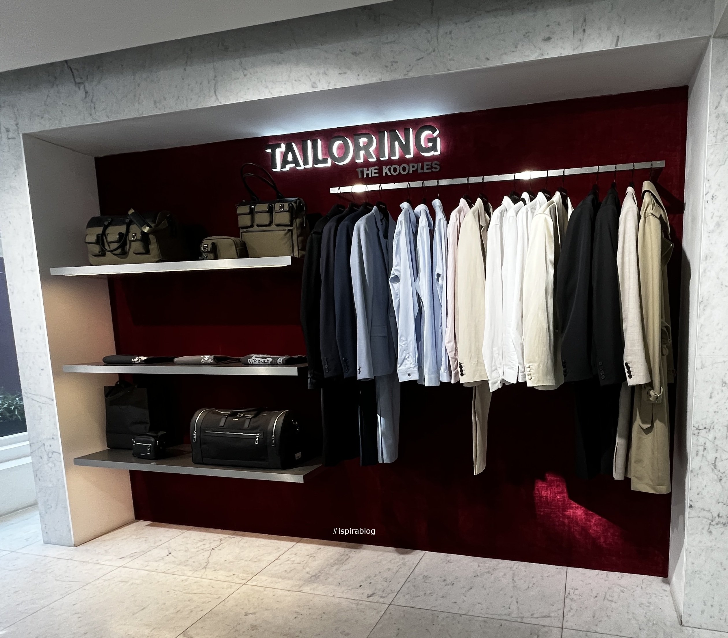 The Kooples London - Spring 2026 Collections - suits and shirts with beige trenches, T-shirts and black and green bags 2026-04-01