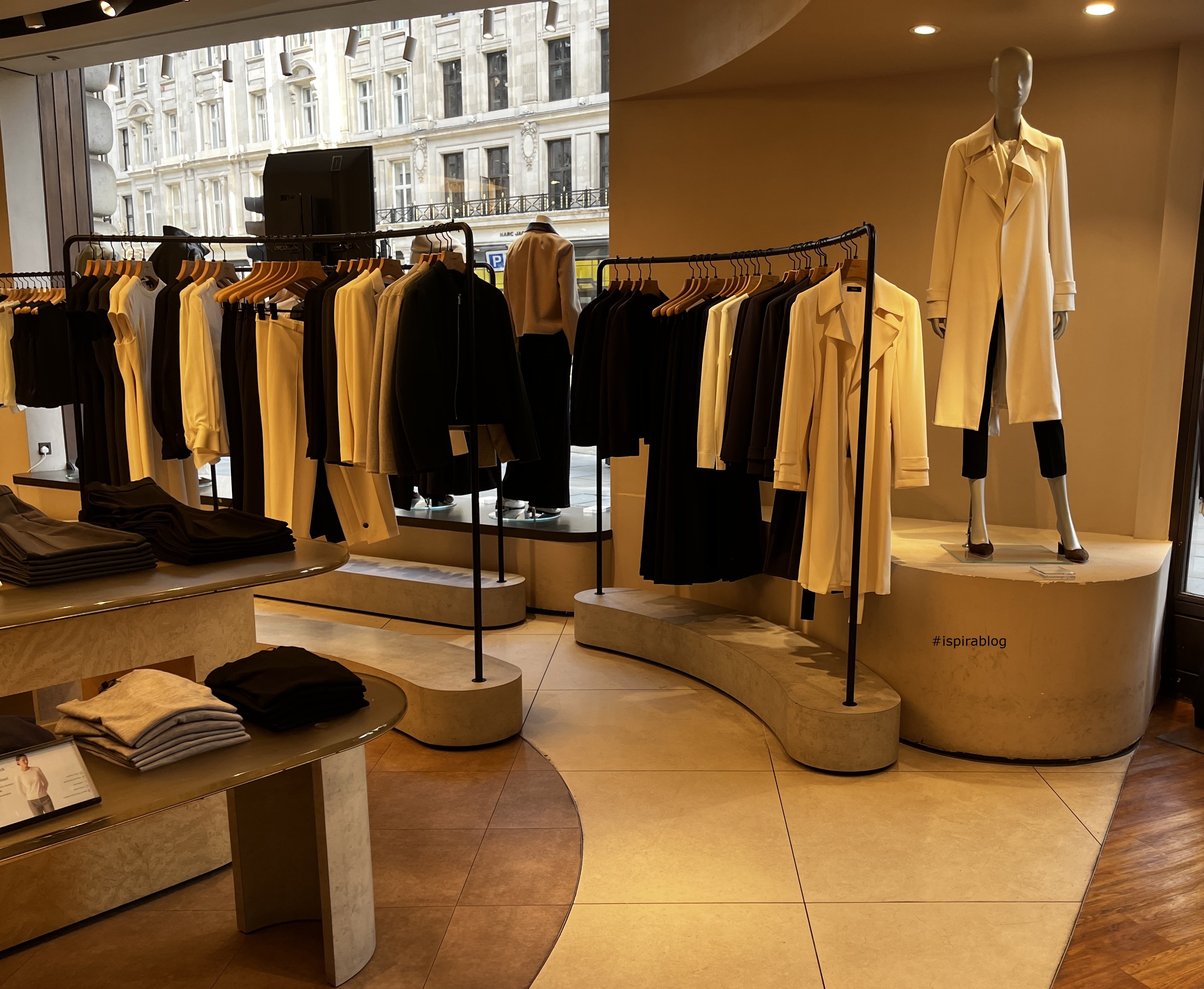 Theory London - Spring 2026 Collections - black and white womenswear with white trench, heeled black shoes, T-shirts and trousers 2026-03-31