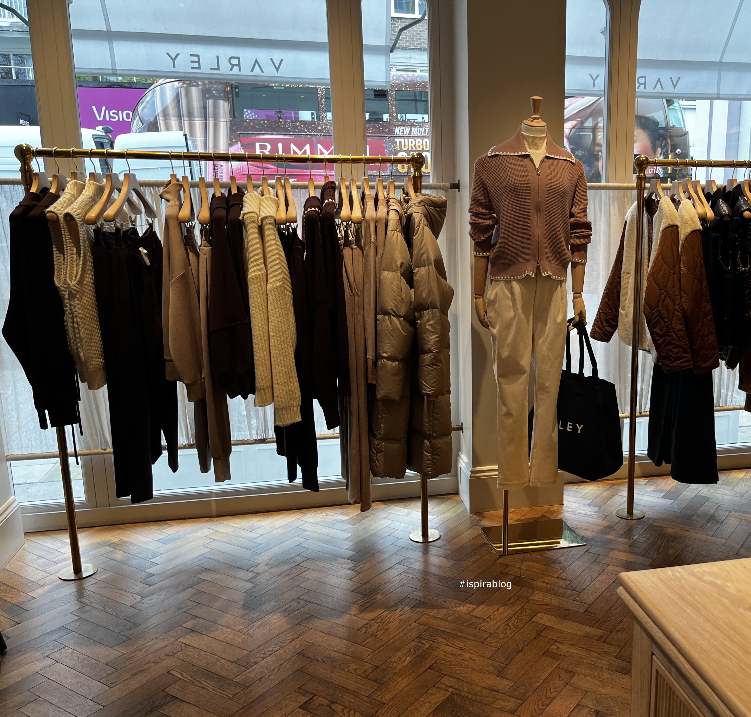 Varley London - Spring 2026 Collections - internal view of the store, black and white womenswear, with grey jackets and boots 2026-04-13