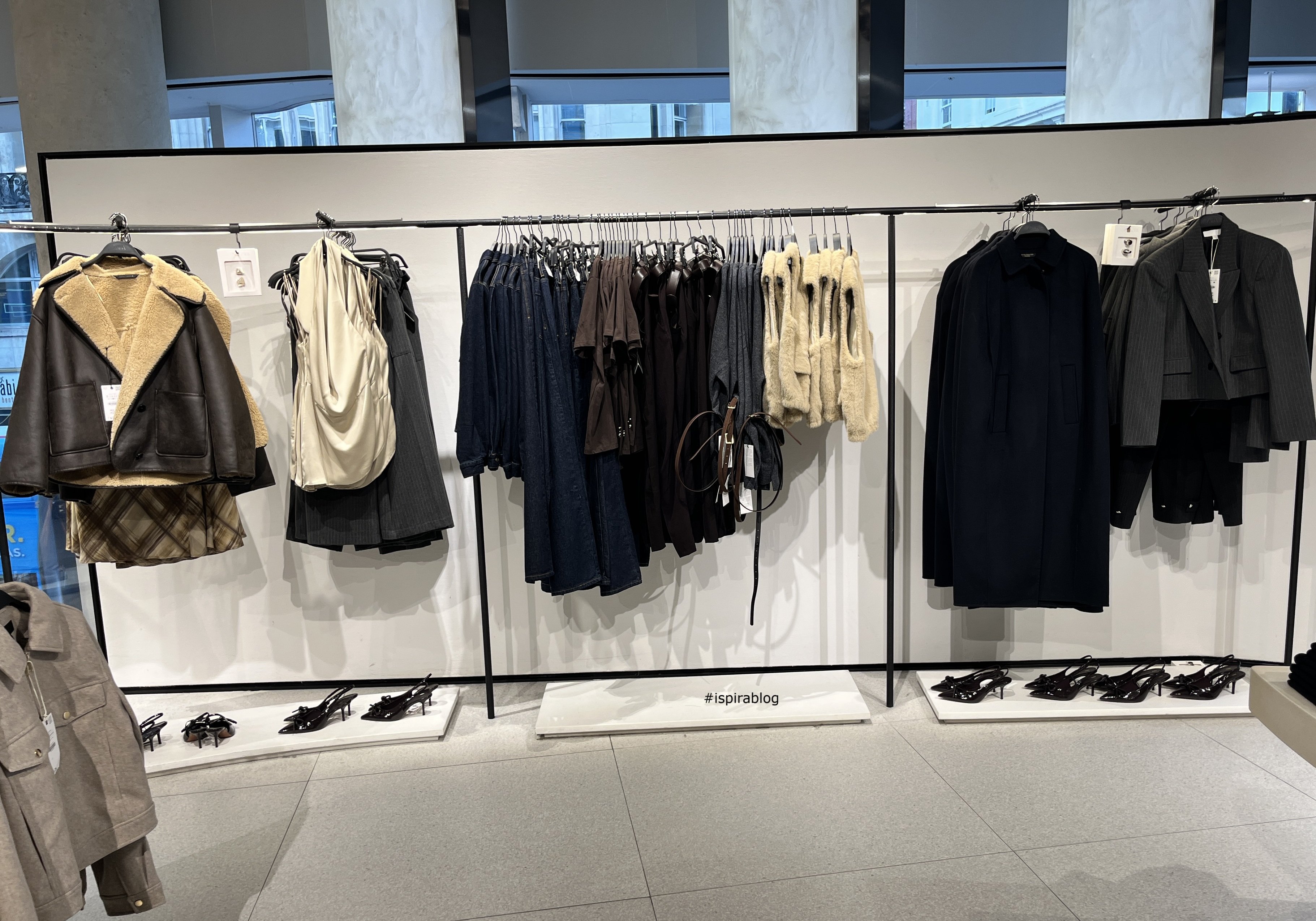 Zara London - Fall 2025 Collection - jeans of various colours with sweaters, dark trousers and brown handbag 2025-11-17