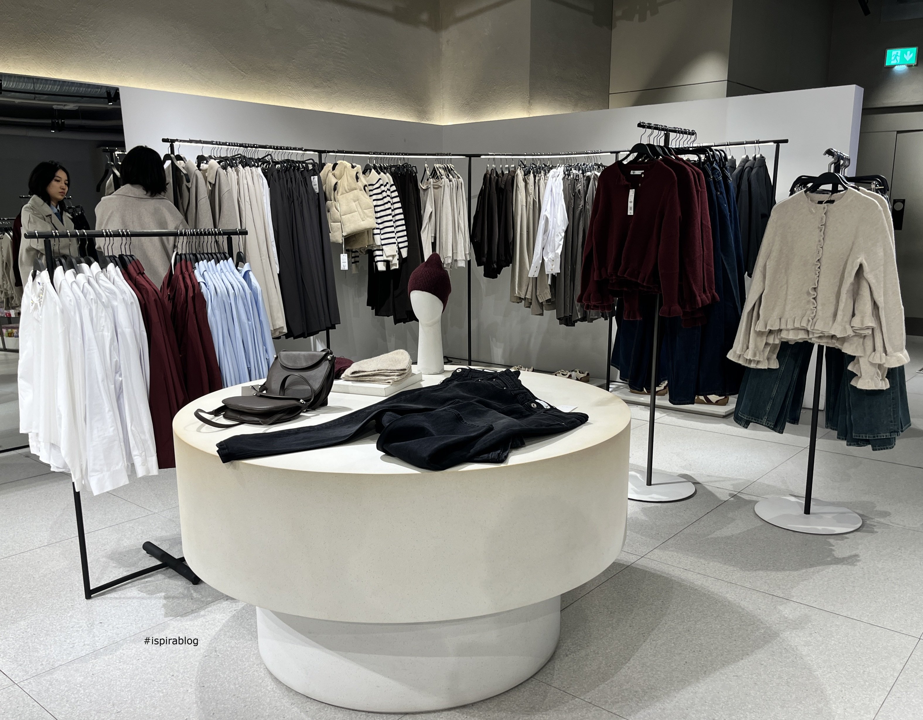 Zara London - Fall 2025 Collection - jeans of various colours with sweaters, dark trousers and brown handbag 2025-11-17
